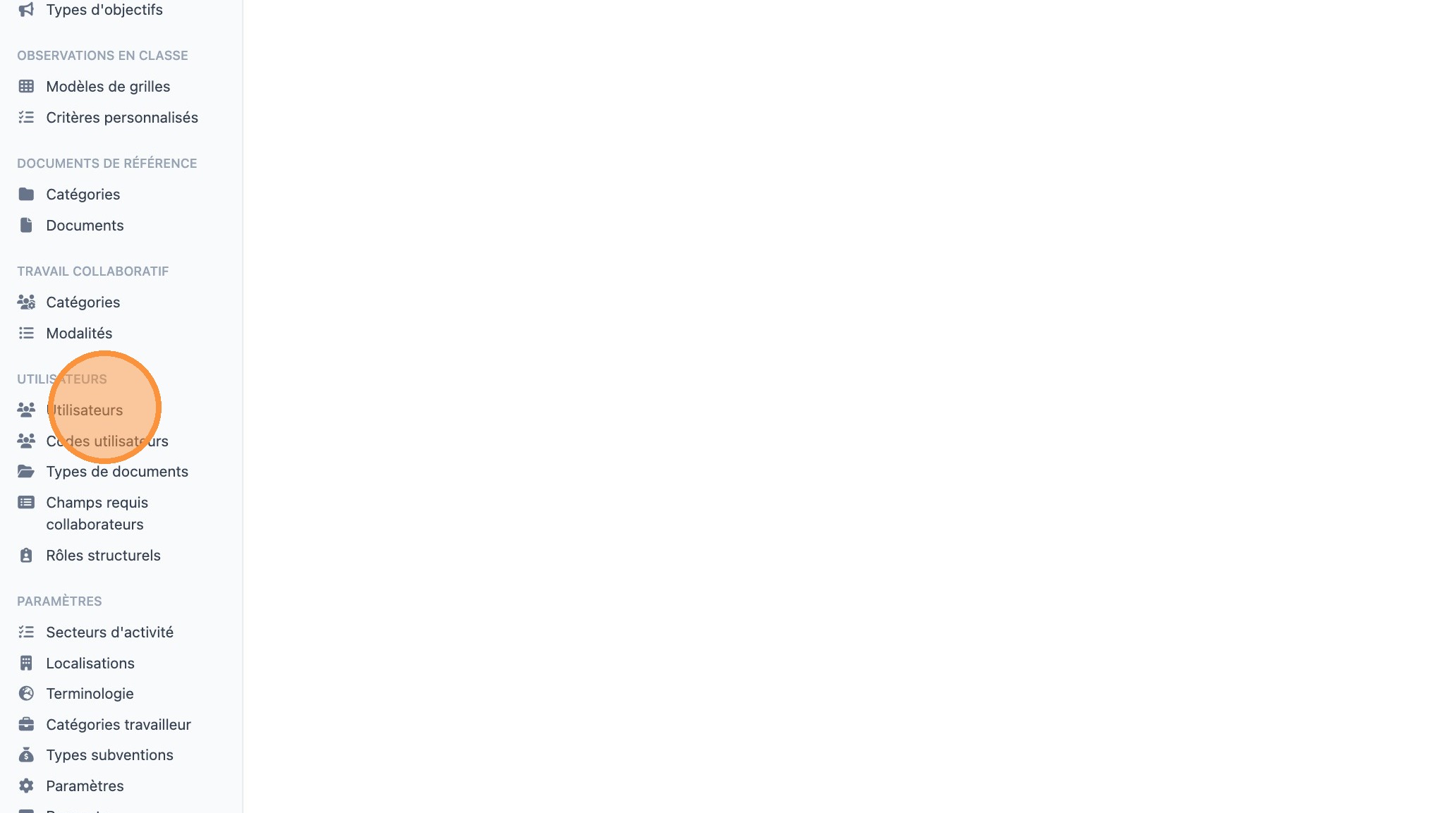 1. Dans le menu ADMIN ORGANISATION, cliquer sur Utilisateurs.