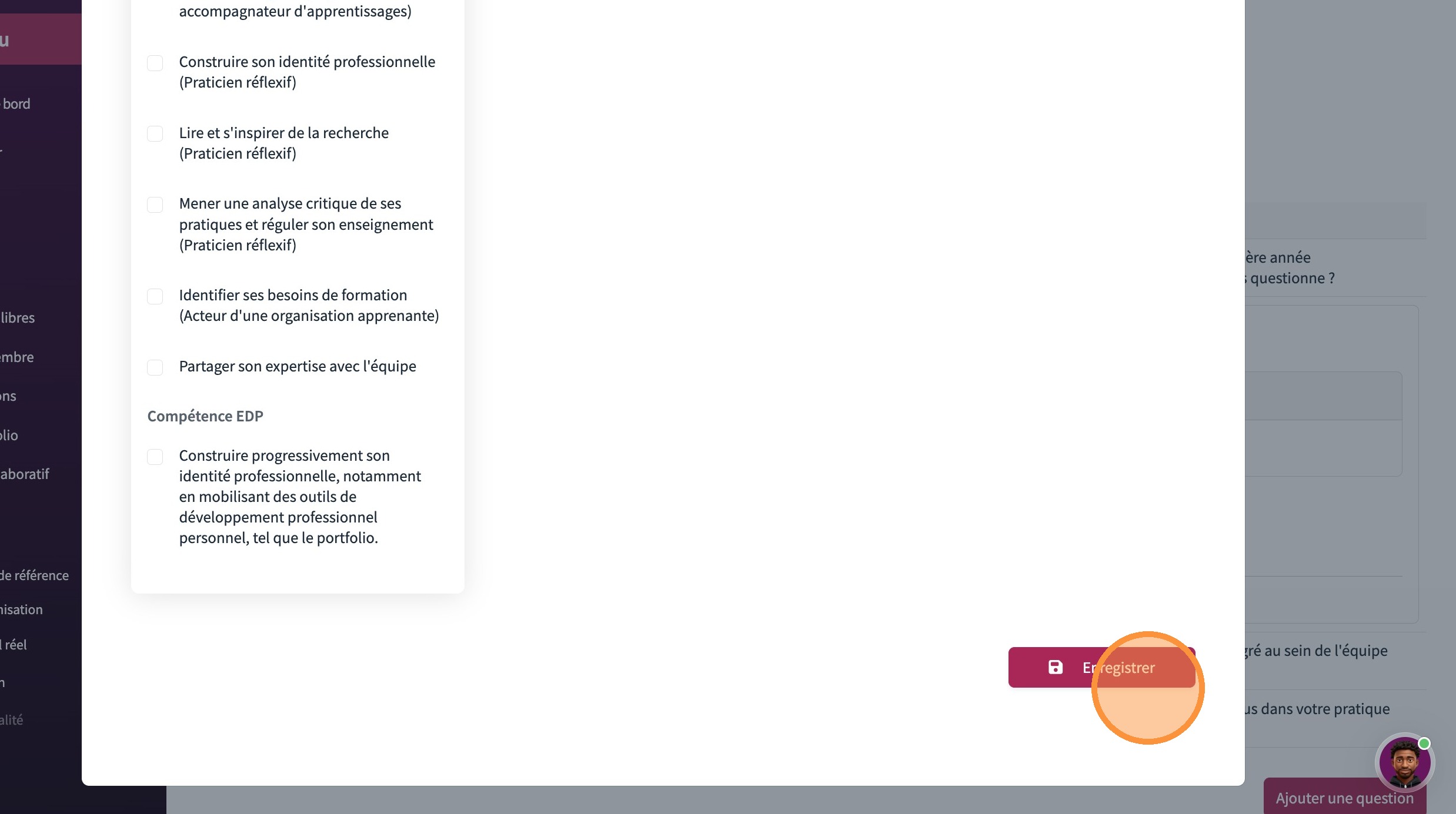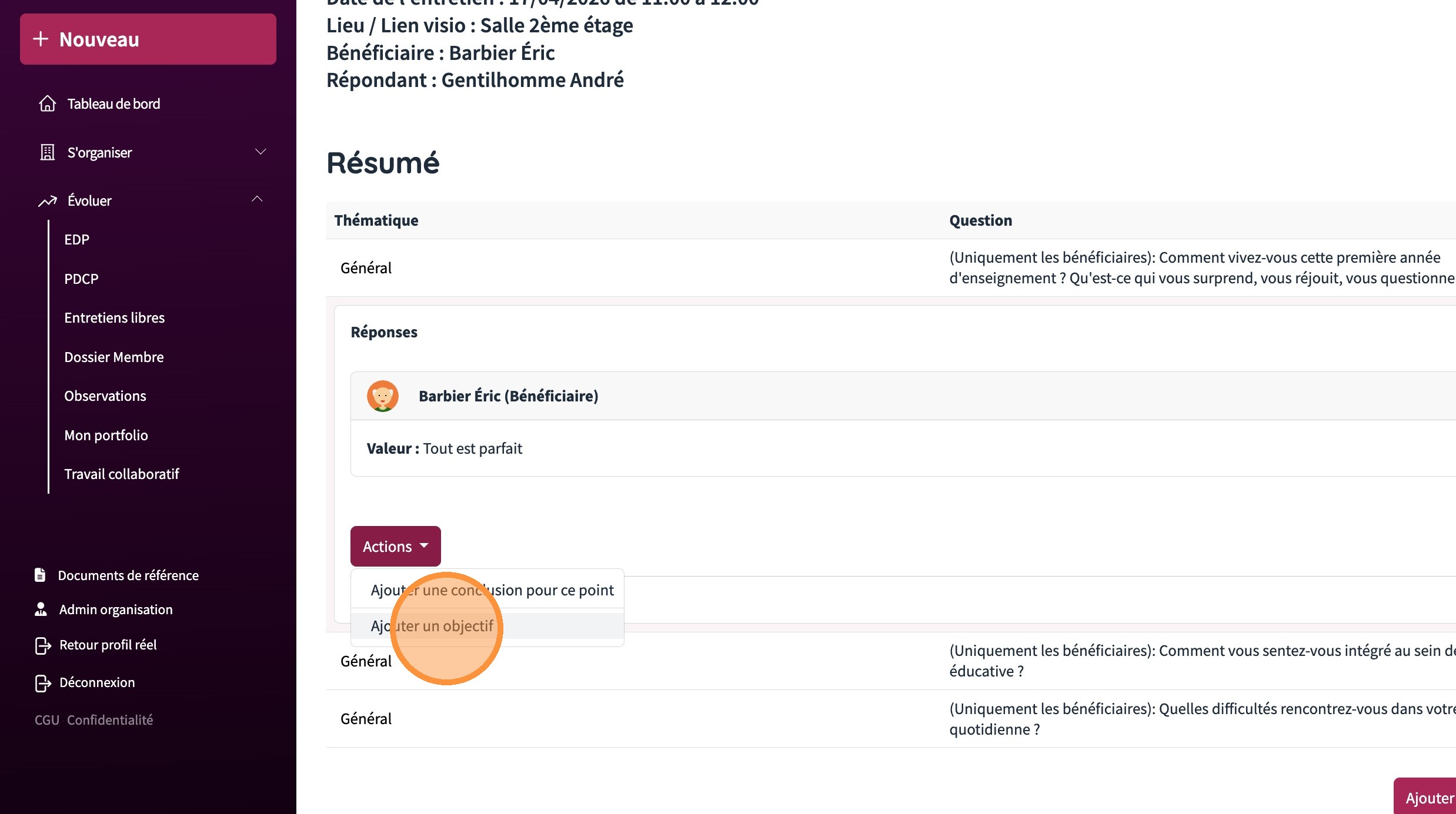 1. Directement dans l'EDP, dans chaque question, derrière le bouton ACTIONS, se trouve le bouton AJOUTER UN OBJECTIF.