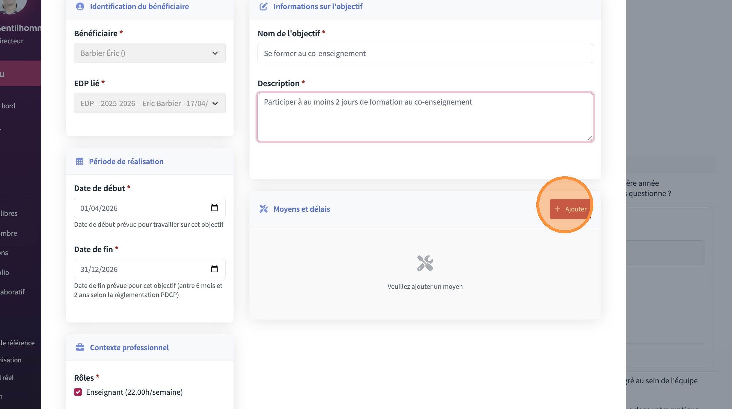 Tip! Il est possible d'ajouter un objectif PDCP à plusieurs endroits dans VitalTeam: