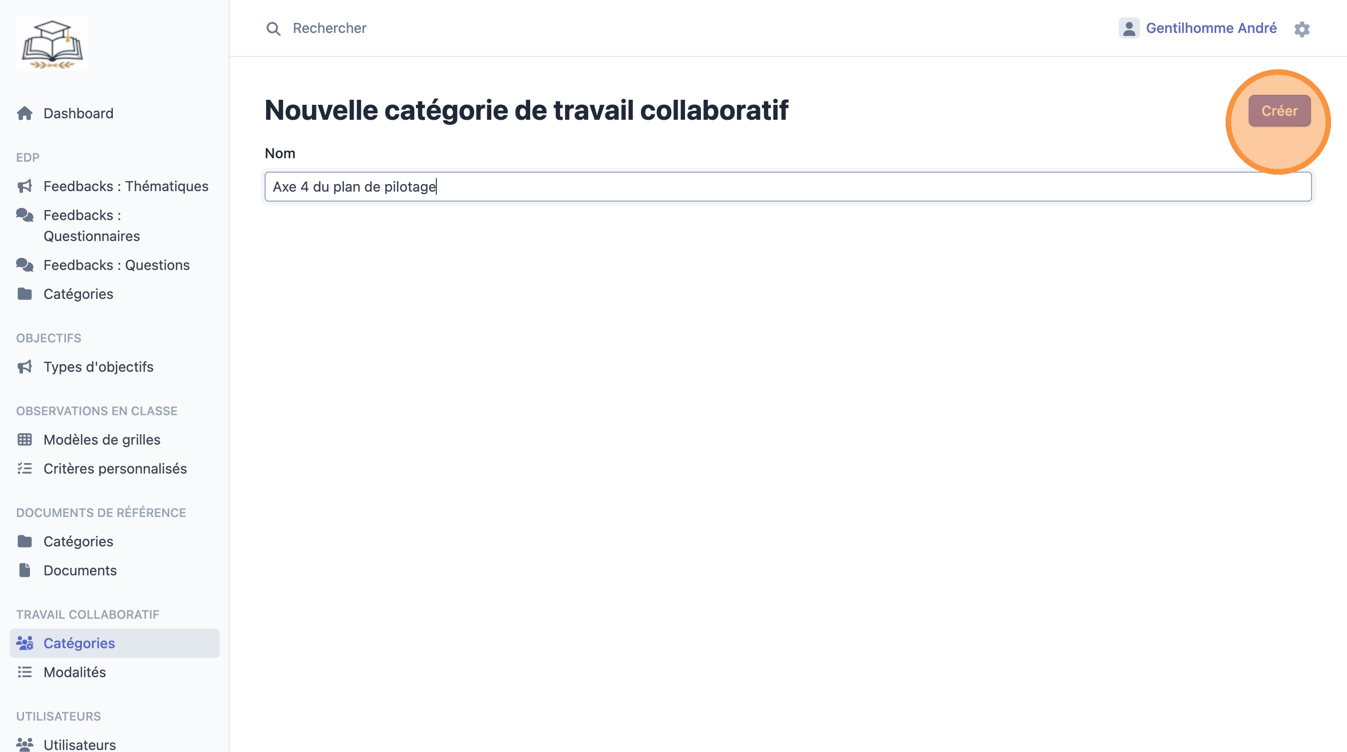 3. Saisir le nom de la nouvelle catégorie et cliquer sur "Créer".