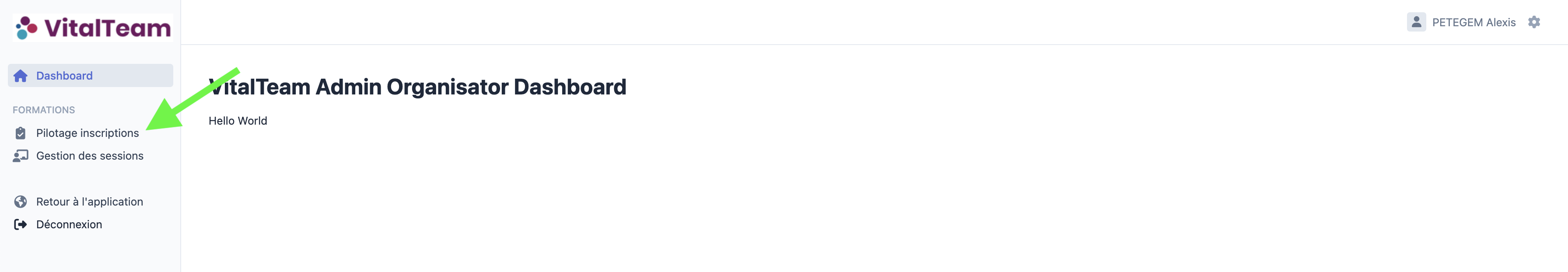 - Toujours dans la colonne de gauche, cliquez sur PILOTAGE INSCRIPTIONS.