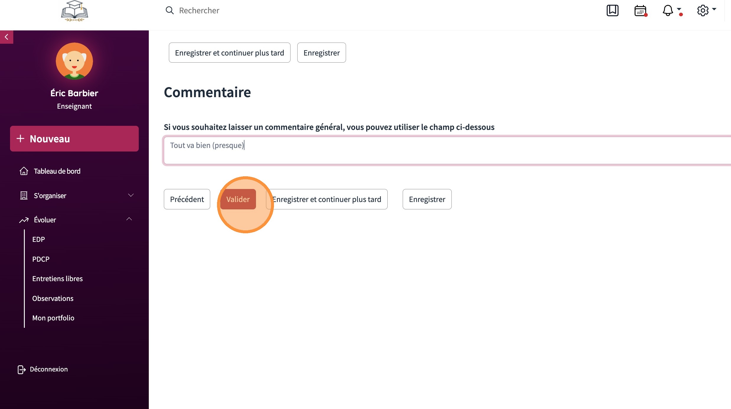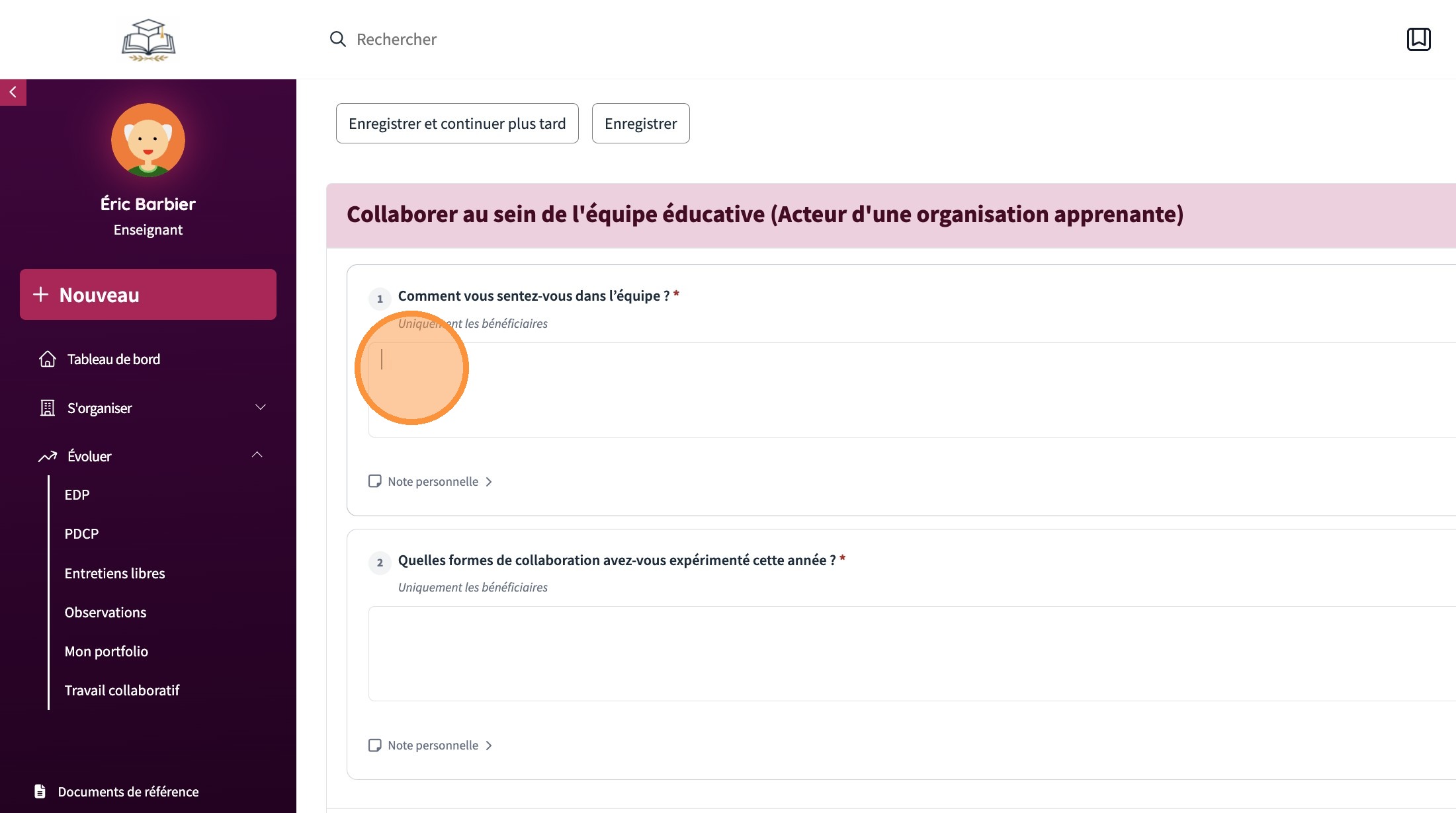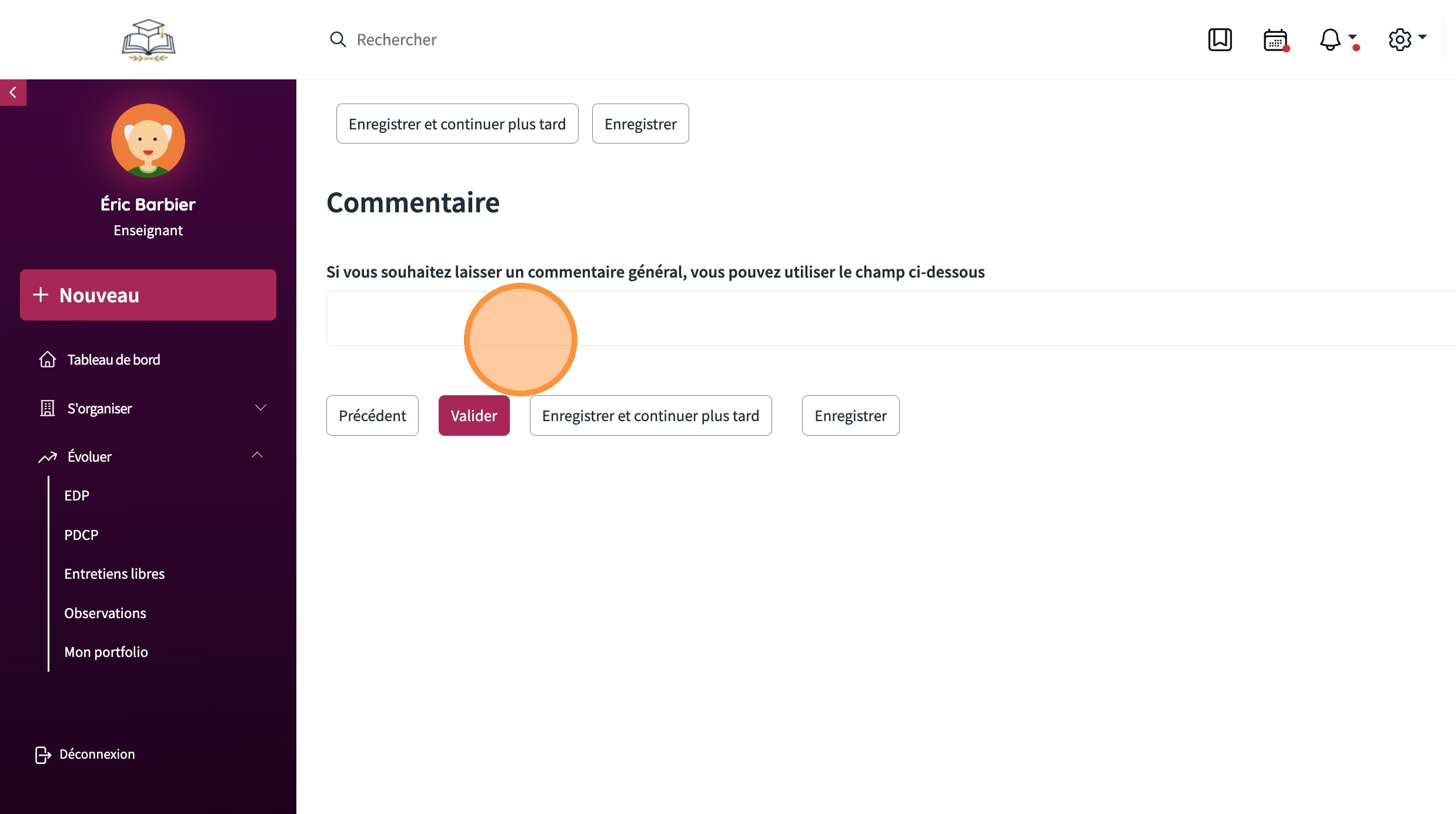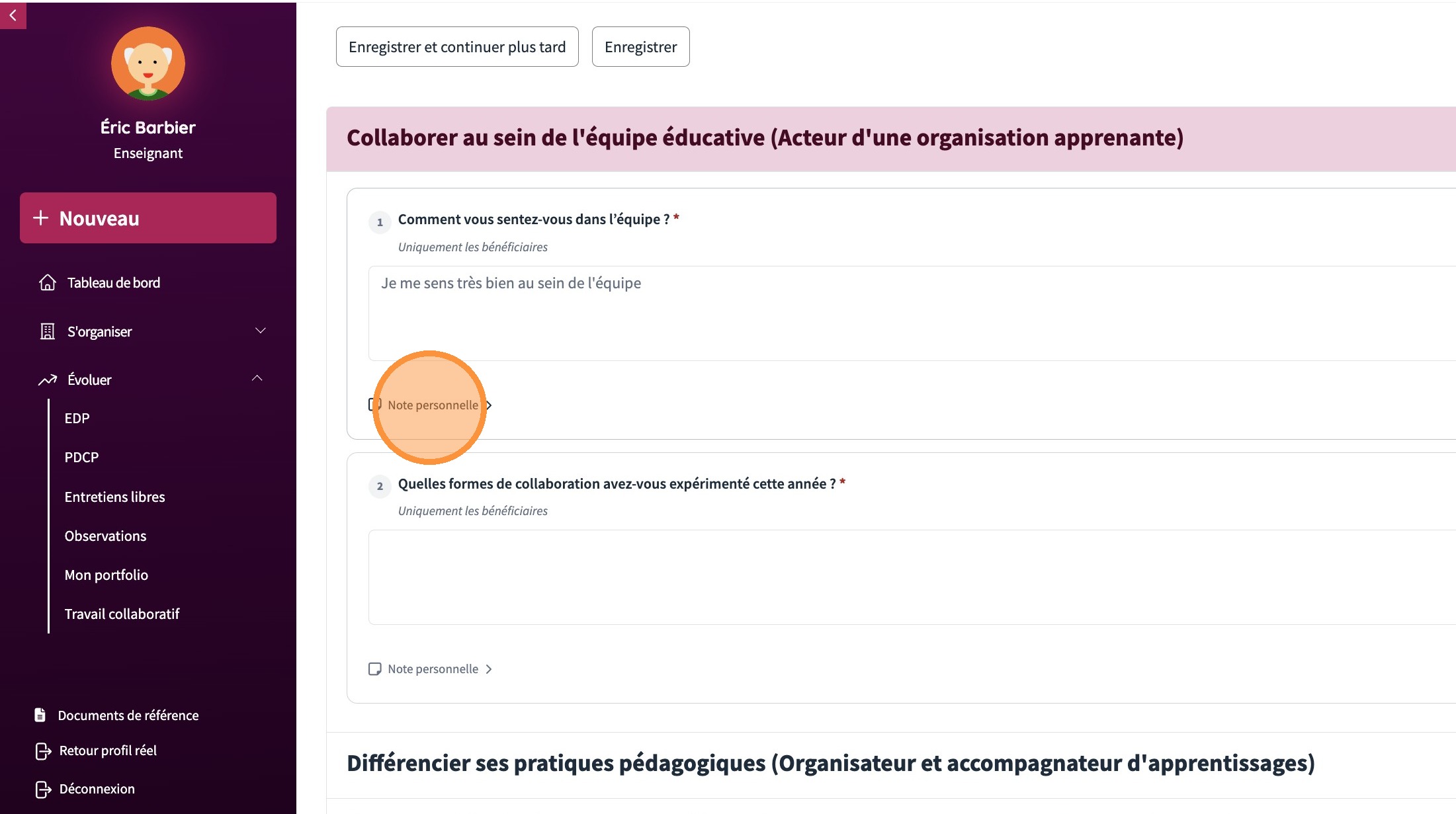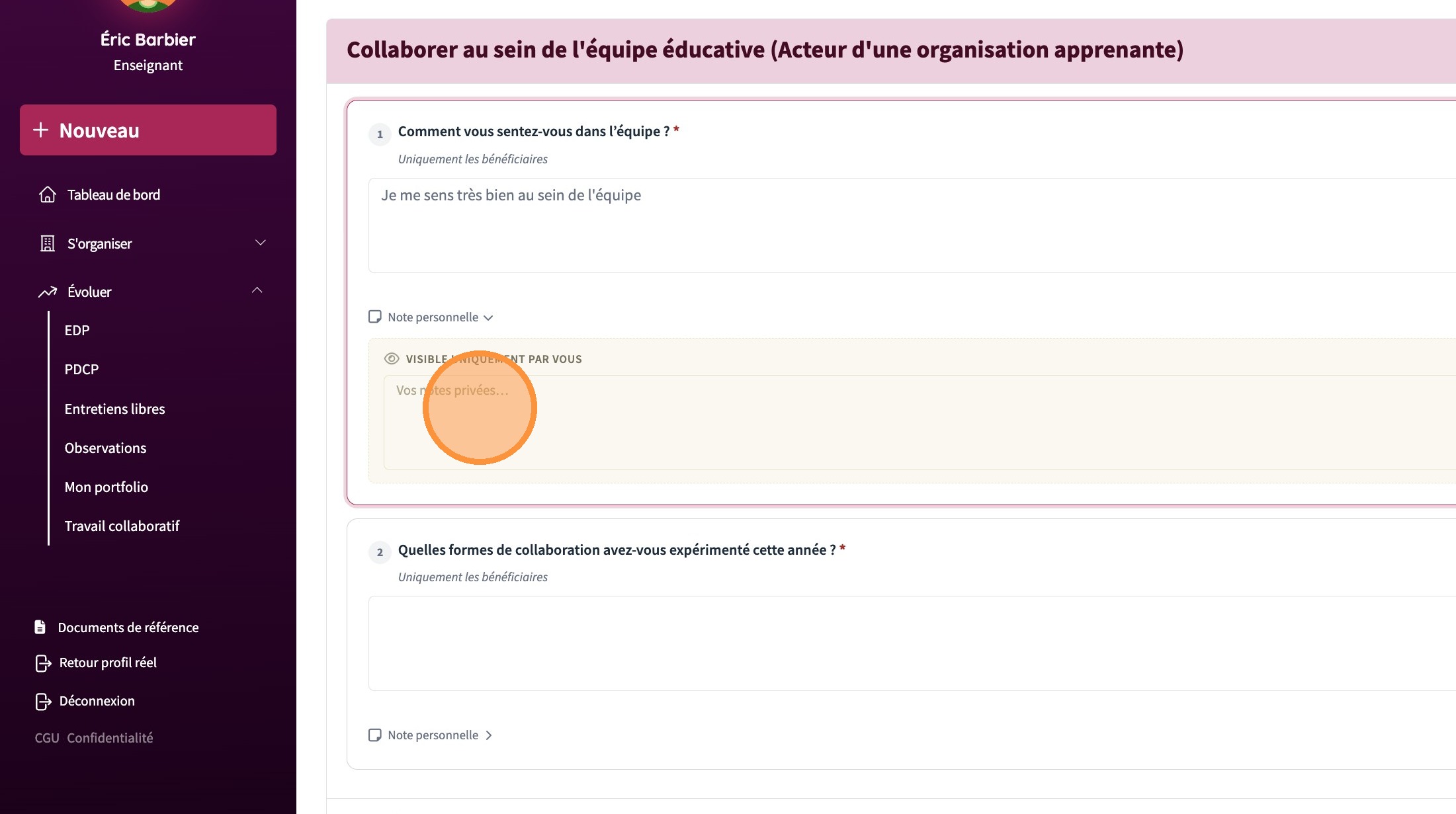 Tip: Tip! Lorsque la préparation est validée, la direction (ou son·sa délégué·e) peut voir la préparation du membre de l'équipe (enseignant/éducateur). Mais elle ne voit pas les notes personnelles.