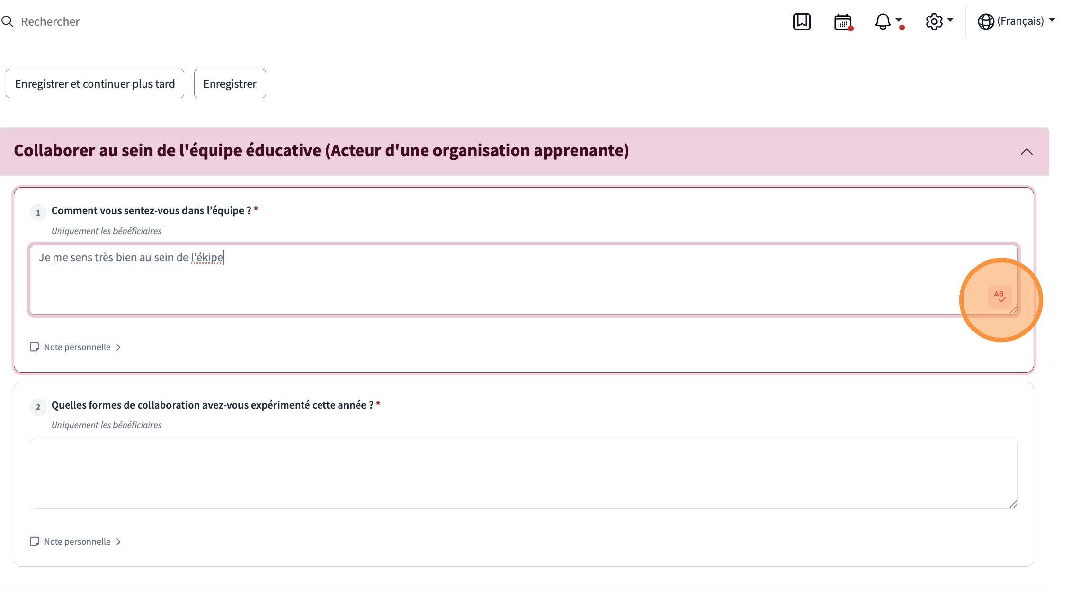 5. Vous pouvez demander une correction orthographique et grammaticale en cliquant sur l'icône AB dans le coin en bas à droite du cadre.