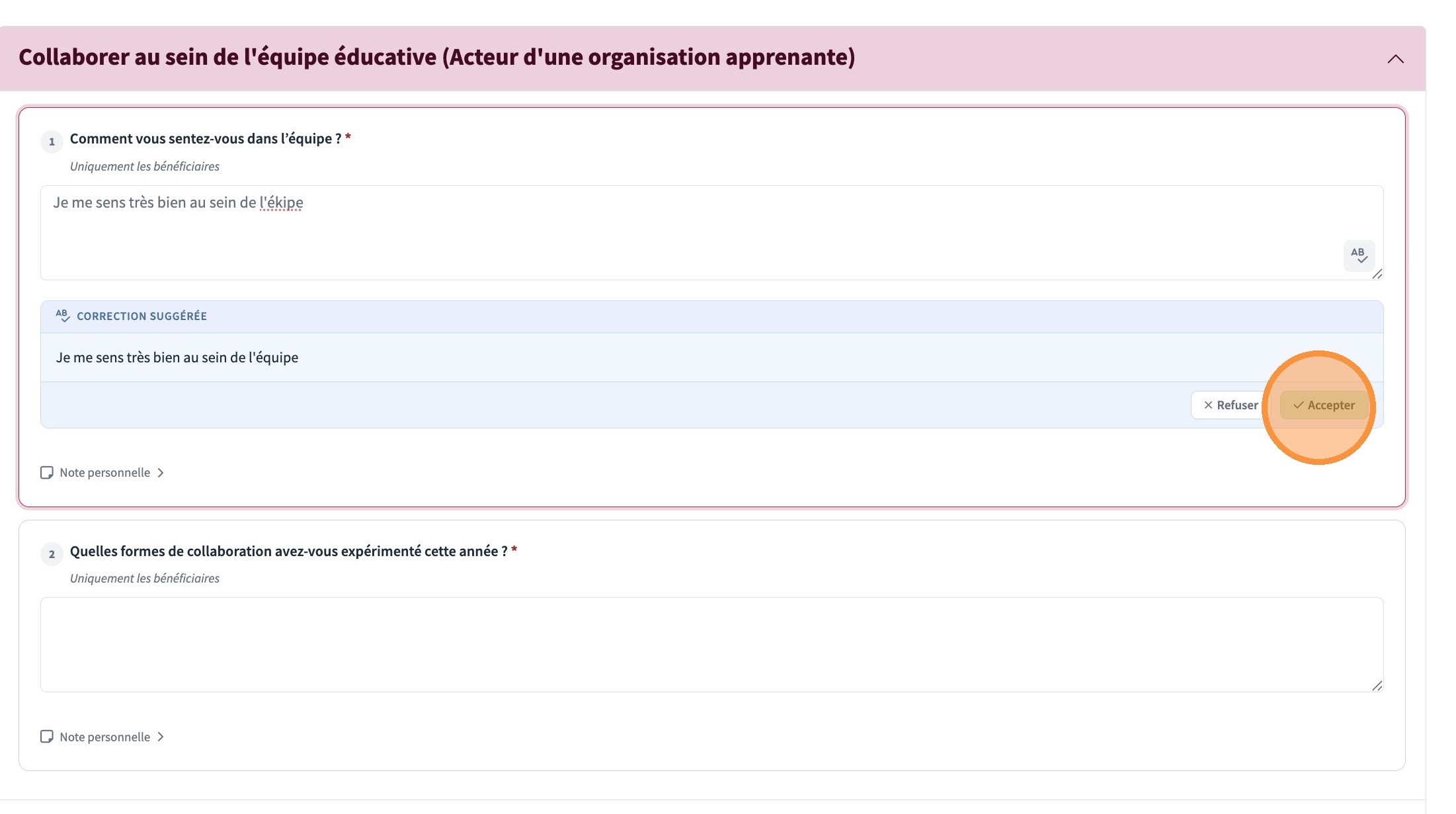 6. Si la correction vous convient, cliquez sur "Accepter". Si pas, sur "Refuser" et vous retrouverez le texte initial.