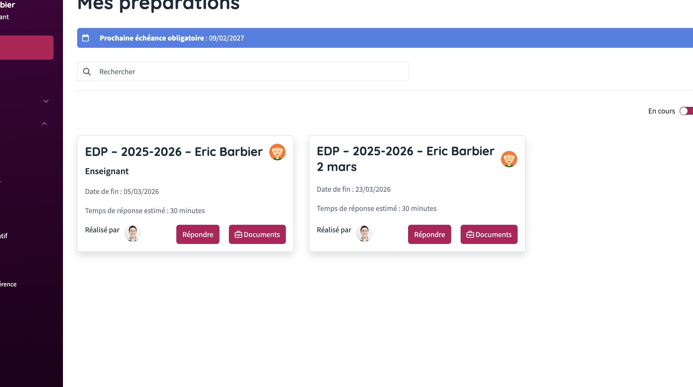 1. Allez dans l'onglet "Mes préparations" dans le menu EDP.